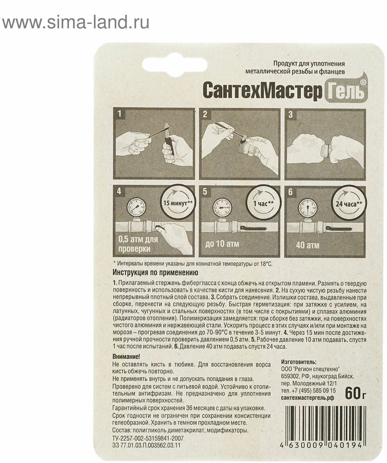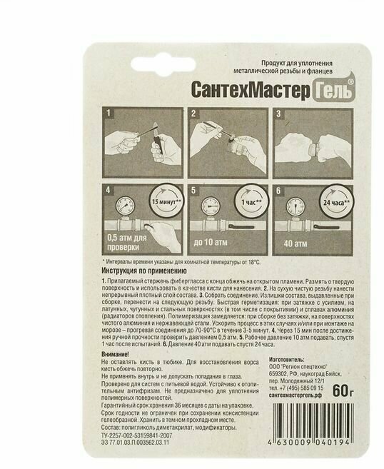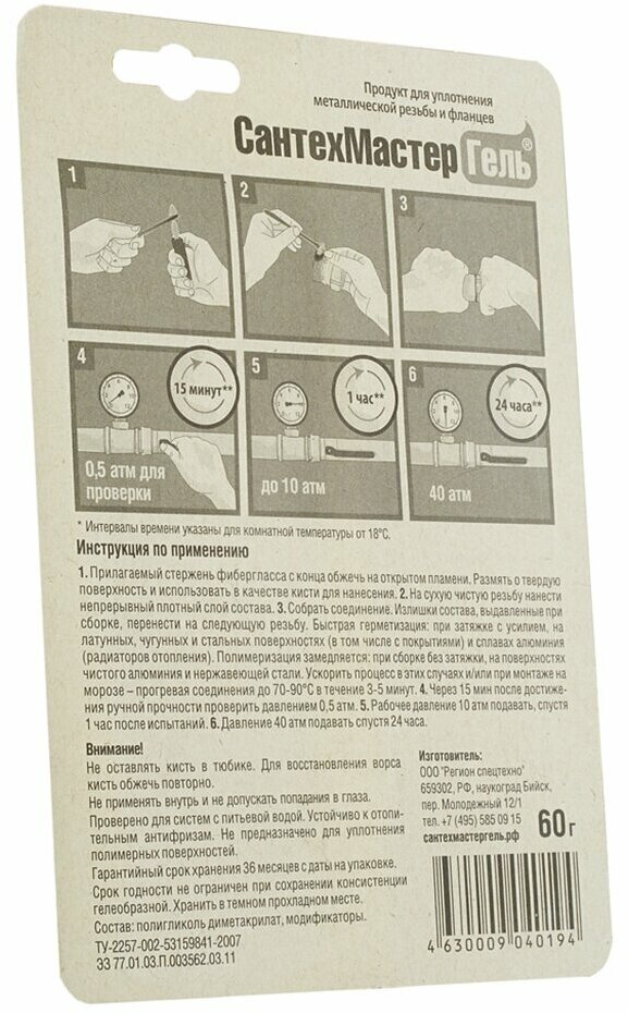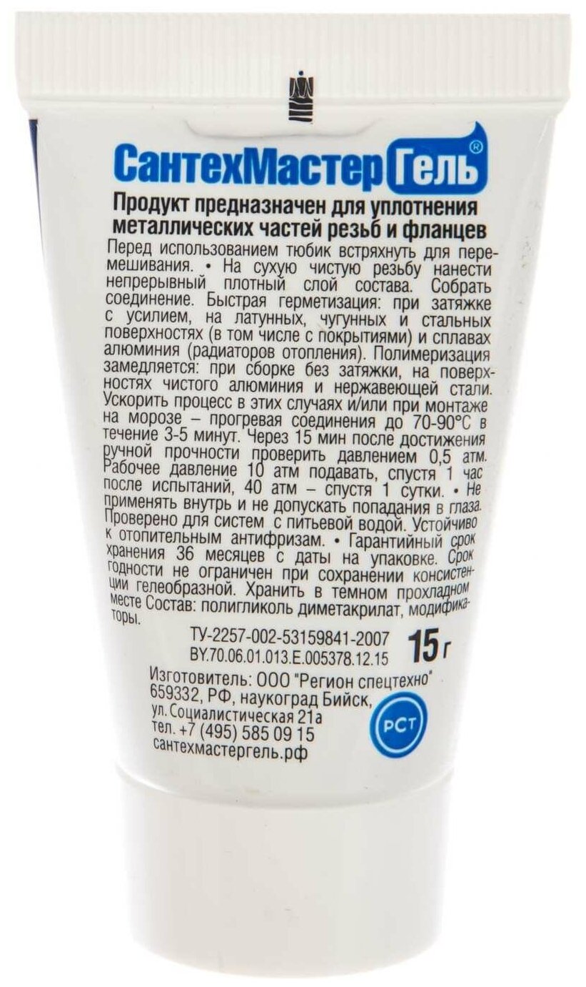 Type: anaerobic gel, application: hot water, diesel fuel, heating antifreeze, potable water, natural gas, compressed air, liquefied gas, cold water, for steel pipes, threaded and flanged seals