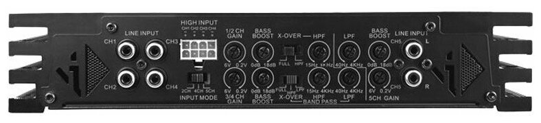 Car amplifier, channels: 5, class A/B, 4 ohm power: 60 W, 2 ohm power: 90 W