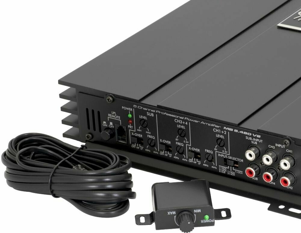Car amplifier, channels: 5, 4 ohm power: 70 W, 2 ohm power: 110 Wbridge mode