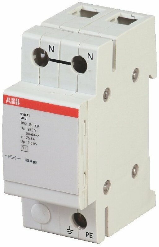 Type: arrester for lightning protection of power supply systems, mounting method: DIN-rail with -profile 35 mm, nominal. surge current reset 8/20: 50 kA, lightning surge current 10/350: 50 kA