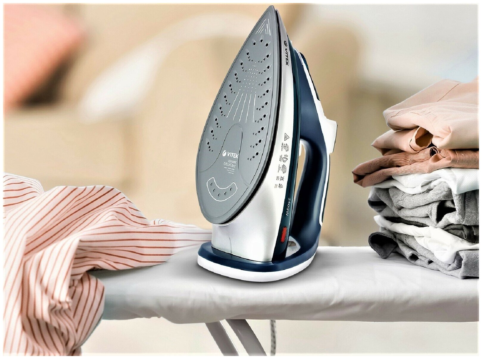 Sole material: ceramic, power: 2200 W, additional functions: steam boost, constant steam supply, self-cleaning system, dry ironing, spray function, vertical steaming, special features: ball fastening