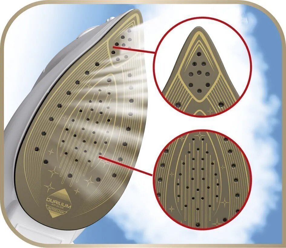 Sole material: ceramic, power: 2200 W, additional functions: steam boost, constant steam supply, self-cleaning system, dry ironing, spray function, vertical steaming, special features: ball fastening