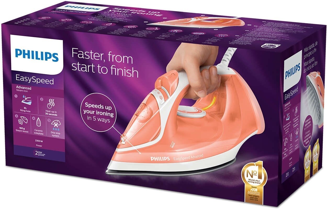 Soleplate material: ceramic, power: 2300 W, additional functions: steam boost, continuous steam, steam regulation, spray function, vertical steam, steam boost consumption: 180 g/min, pa