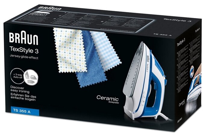 Sole material: ceramics, power: 2000 W, automatic switch-off, additional functions: steam boost, constant steam supply, steam regulation, self-cleaning system, spray function, vertical