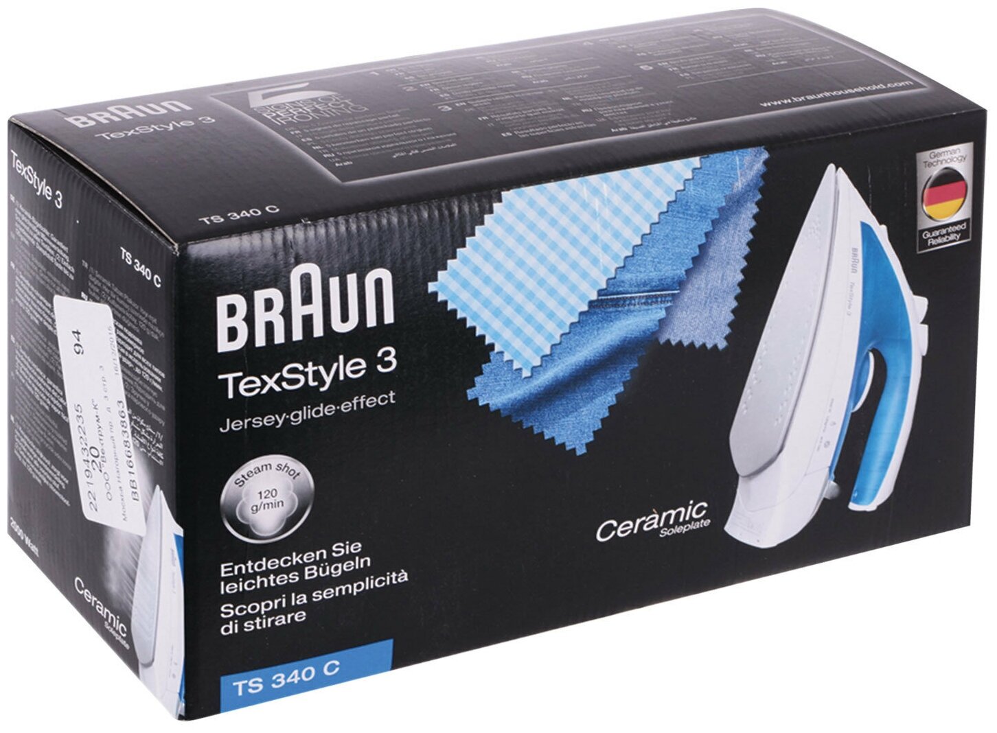 BRAUN TS340C, 2000 W, ceramic coating, self-cleaning, anti-drip, white/blue