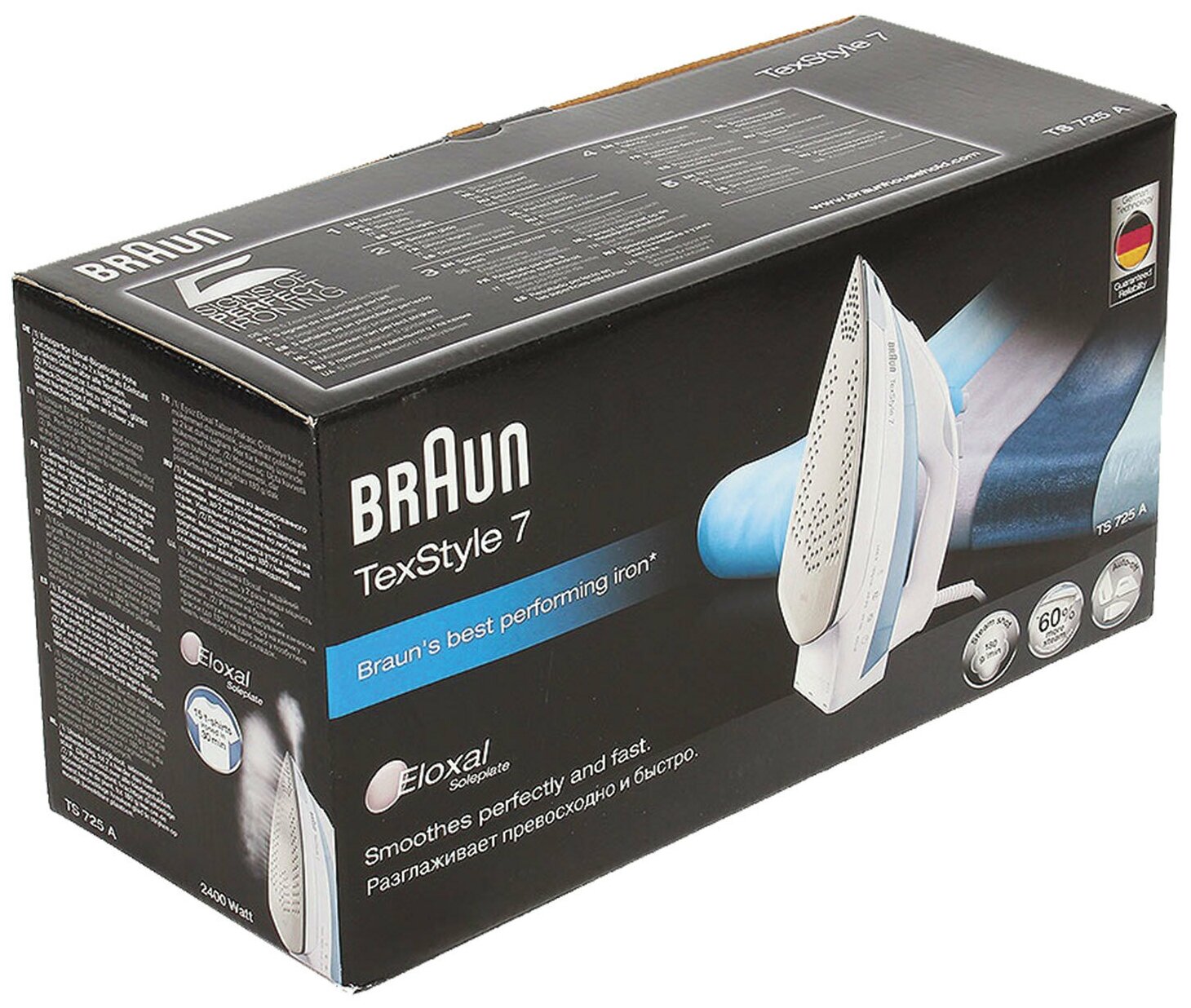 BRAUN TS725A, 2400 W, non-stick coating, self-cleaning, auto-off, anti-drip, white/blue