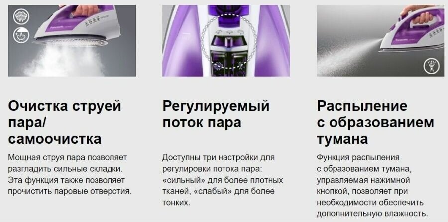 Sole material: ceramic, power: 2200 W, additional functions: steam boost, constant steam supply, self-cleaning system, dry ironing, spray function, vertical steaming, special features: ball fastening