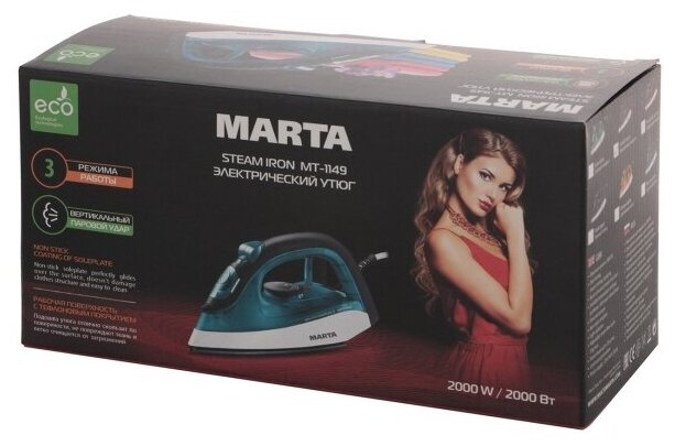 Soleplate material: aluminium, power: 2000 W, vertical steaming, special features: cord ball attachment, power cord length: 2 m, water tank volume: 150 ml, included in the kit: measuring cup, weight: 0.81 kg
