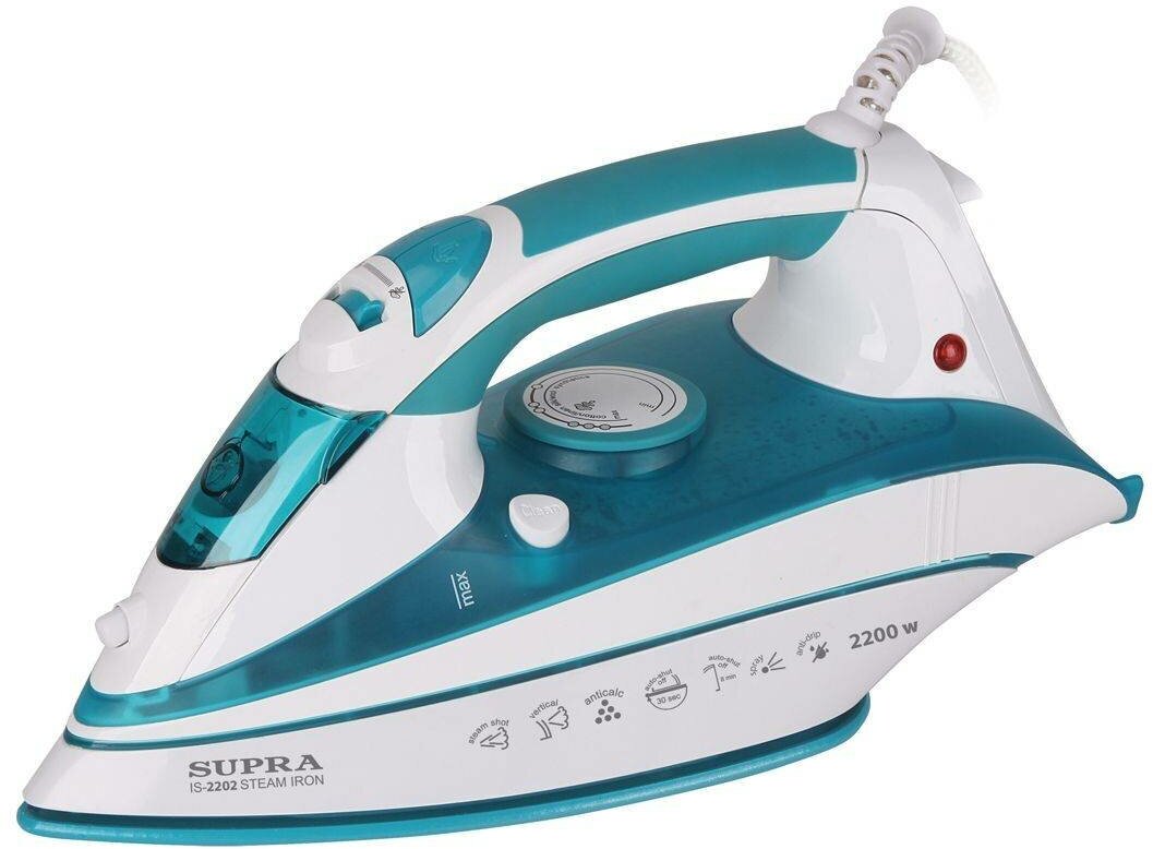 Sole material: ceramics, power: 2200 W, automatic shut-off, additional functions: steam boost, constant steam supply, steam supply adjustment, auto-off signal, self-cleaning system, spray function