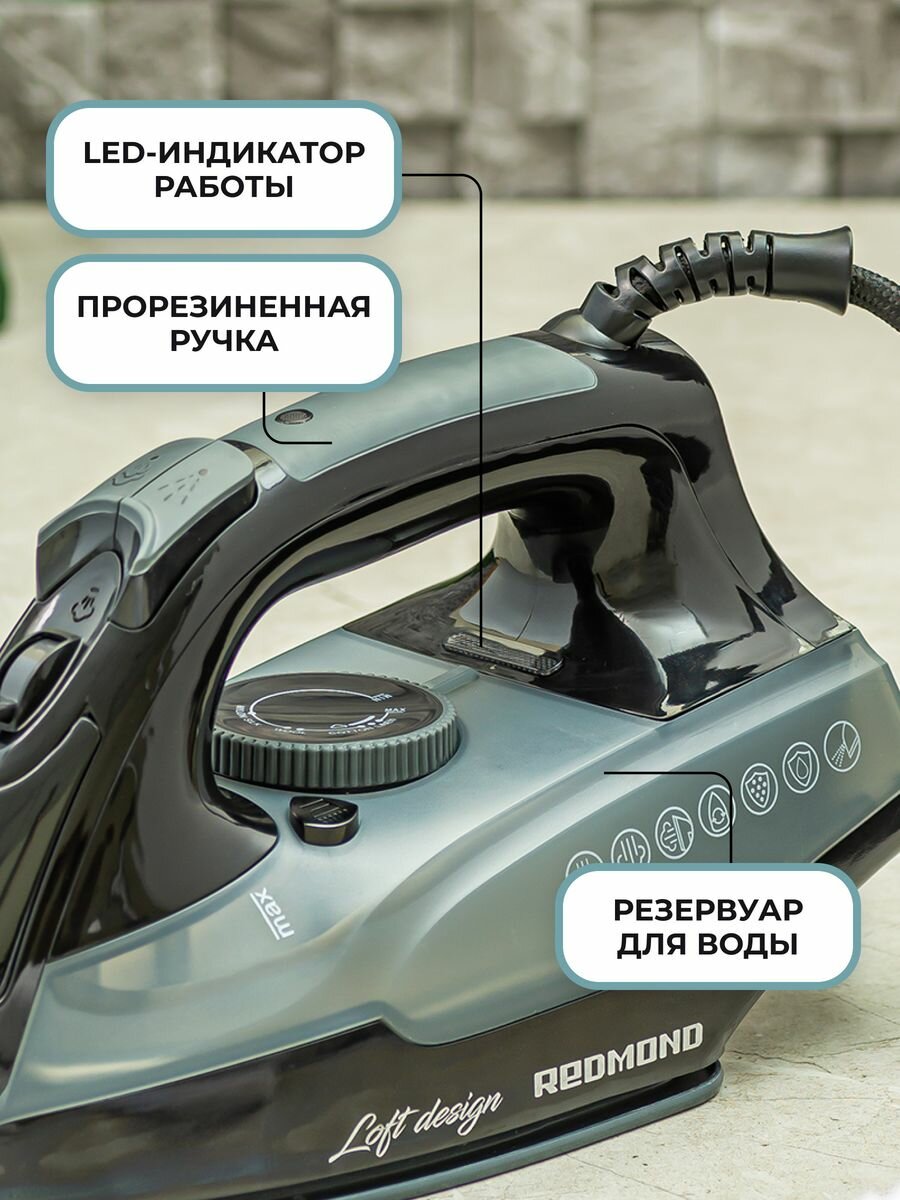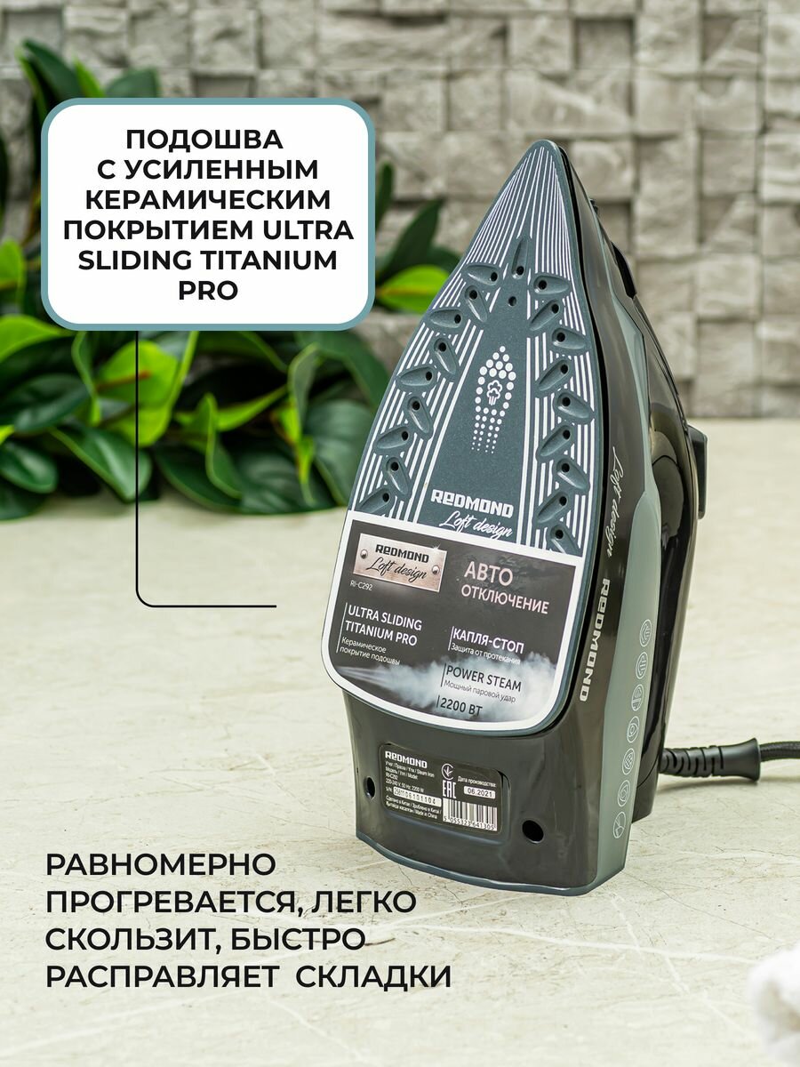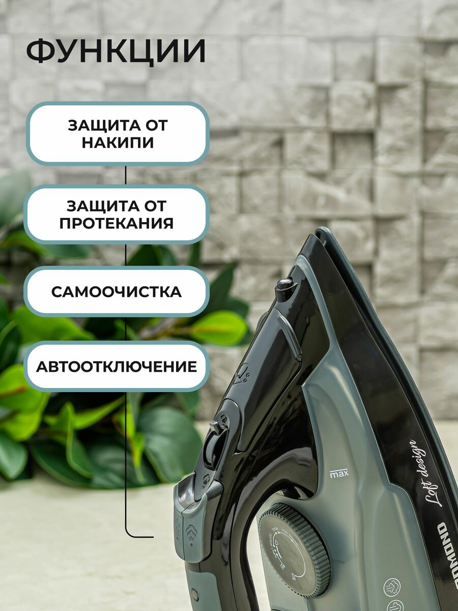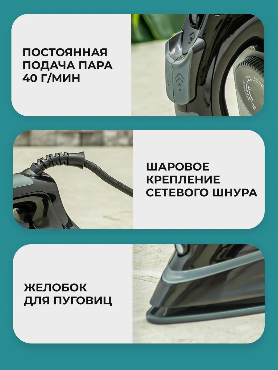 Sole material: ceramics, power: 2200 W, automatic switch-off, additional functions: steam boost, constant steam supply, steam regulation, self-cleaning system, dry ironing, vertical steaming