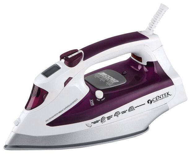 Sole material: ceramic, power: 2200 W, additional functions: steam boost, constant steam supply, self-cleaning system, dry ironing, spray function, vertical steaming, special features: ball fastening