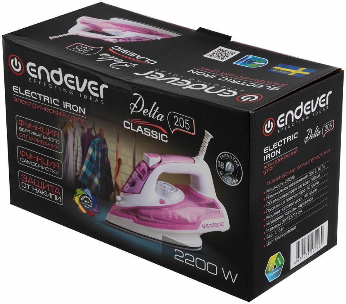 Sole material: ceramic, power: 2200 W, additional functions: steam boost, constant steam supply, self-cleaning system, dry ironing, spray function, vertical steaming, special features: ball fastening