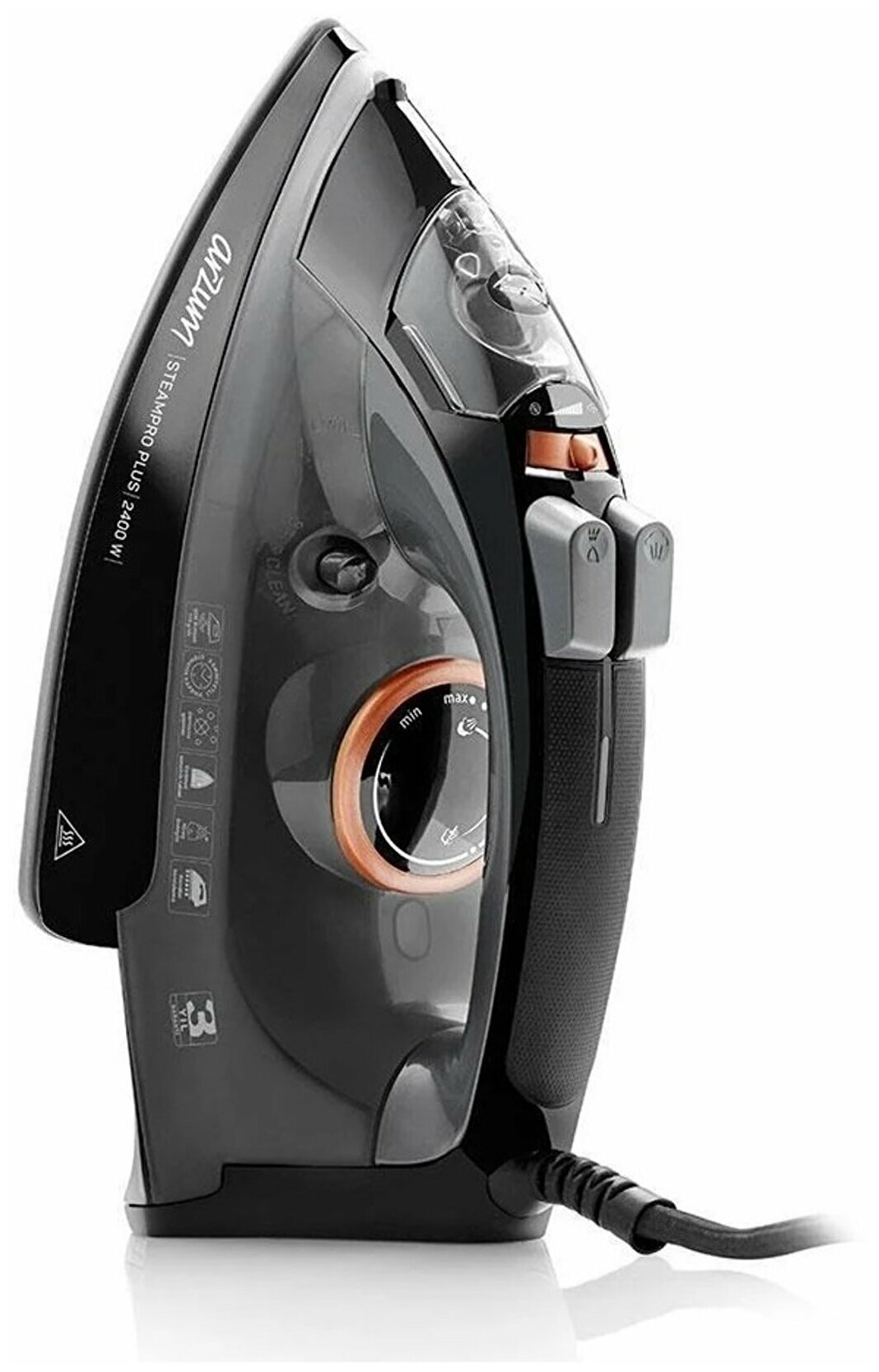 Sole material: ceramic, power: 2200 W, additional functions: steam boost, constant steam supply, self-cleaning system, dry ironing, spray function, vertical steaming, special features: ball fastening