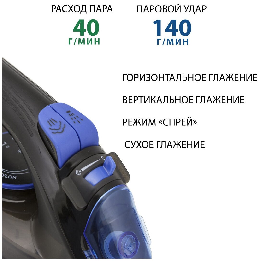Peculiarities: Vertical steam, Anti-drip system, Water sprayer, Self-cleaning function