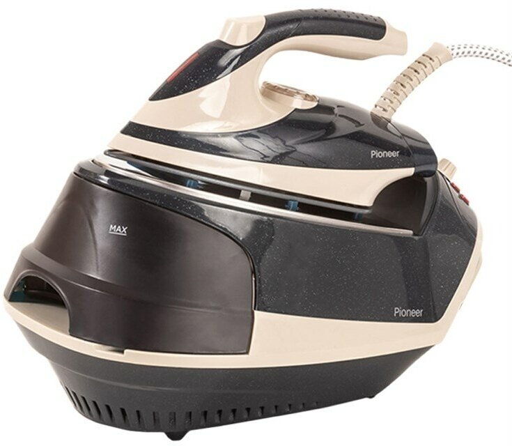 Pioneer ing station, ceramic soleplate, temperature and steam intensity adjustment, thermally insulated housing, anti-drip, 2800 W