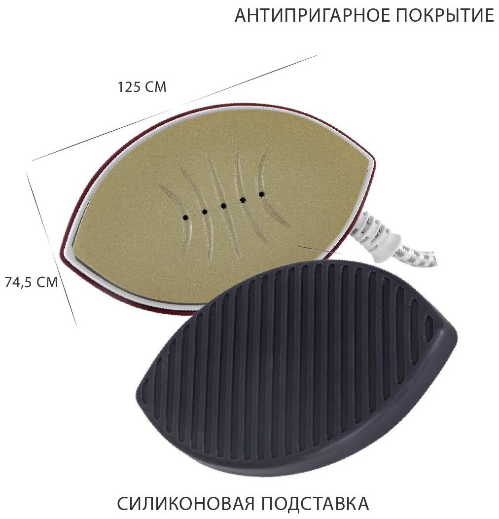Travel compact Pioneer steam with non-stick soleplate and protective silicone stand, 499 W
