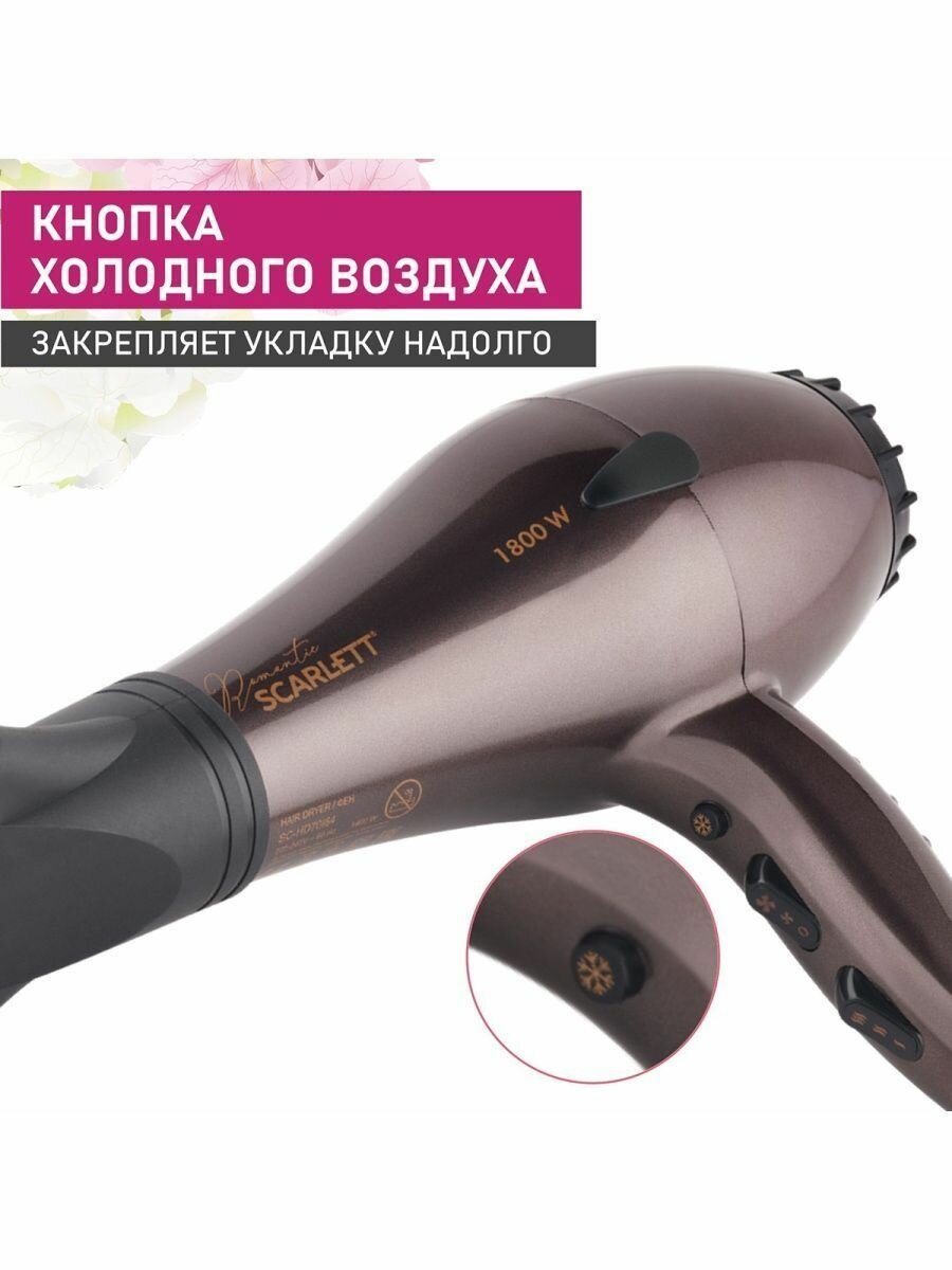 Type: hair dryer, hair dryer power: 1800 W, additional functions: ionization, independent adjustment of heating and air flow, cold air supply, Choice of cold and hot air, ionization function, Protection