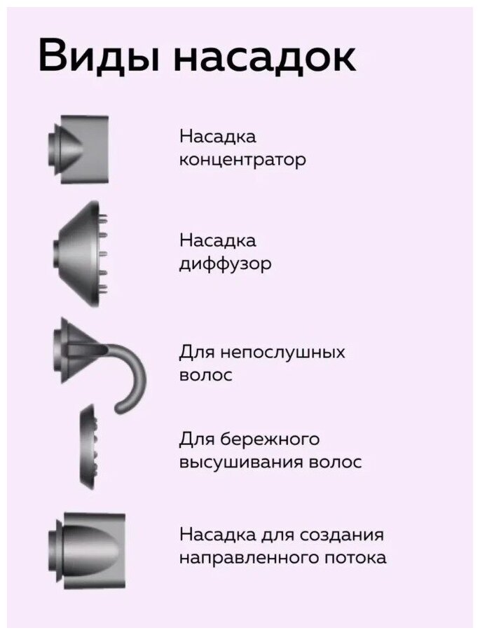Type: hair dryer, hair dryer power: 2200 W, additional functions: ionization, independent adjustment of heating and air flow, cold air supply, attachments: diffuser, concentrator, number of heating modes: 3, quantity