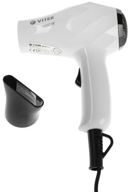 Type: hair dryer, hair dryer power: 1000 W, nozzles: concentrator, number of heating modes: 2, number of speeds: 2, features: overheat protection, hanging loop, power cord length: 1.80 m