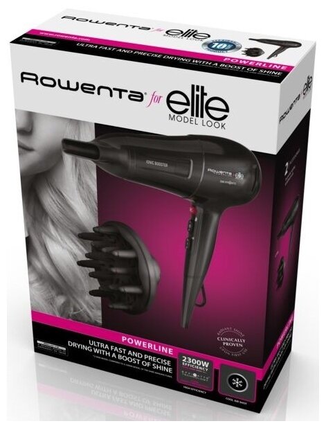 Type: hair dryer, hair dryer power: 2200 W, additional functions: ionization, independent adjustment of heating and air flow, cold air supply, attachments: diffuser, concentrator, number of heating modes: 3, quantity