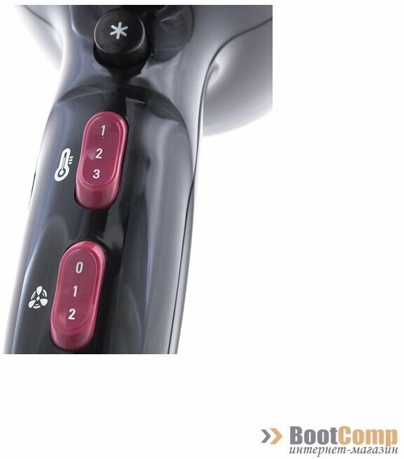 Type: hair dryer, hair dryer power: 2200 W, additional functions: ionization, independent adjustment of heating and air flow, cold air supply, attachments: diffuser, concentrator, number of heating modes: 3, quantity
