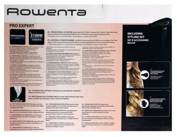 Rowenta CV8820F0, AC motor, 2100 W, 3 temperatures, 2 speeds, cold air, cord 1.8 m