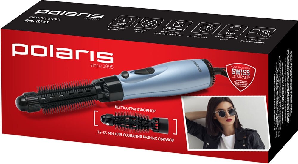 Type: hair dryer brush, hair dryer power: 700 W, additional functions: cold air supply, nozzles: brush, features: cord rotation, overheat protection, hanging loop