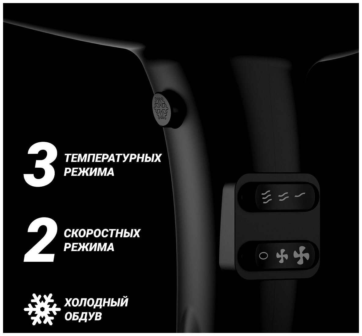 Ionization, independent adjustment of heating and air flow, cold air supply