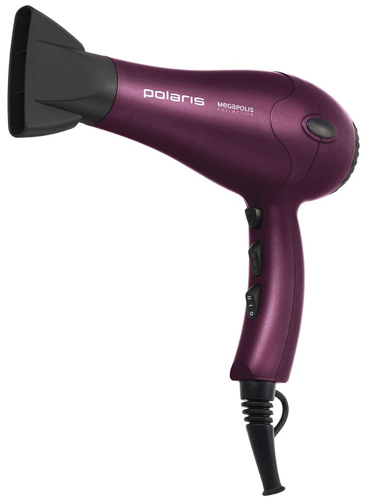 Description: Type: hair dryer, hair dryer power: 2200 W, additional functions: ionization, independent adjustment of heating and air flow, cold air supply, attachments: diffuser, concentrator, number of heating modes: 3, quantity