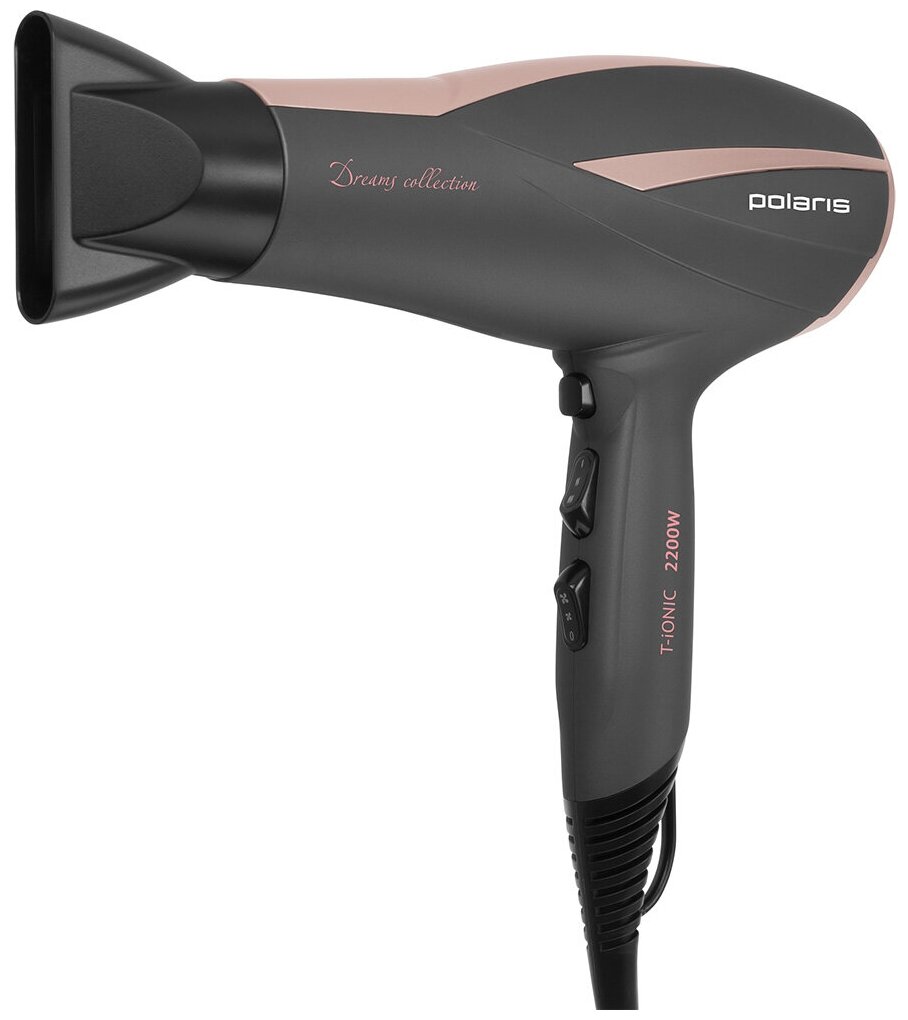 Description: Type: hair dryer, hair dryer power: 2200 W, additional functions: ionization, independent adjustment of heating and air flow, cold air supply, attachments: diffuser, concentrator, number of heating modes: 3, quantity