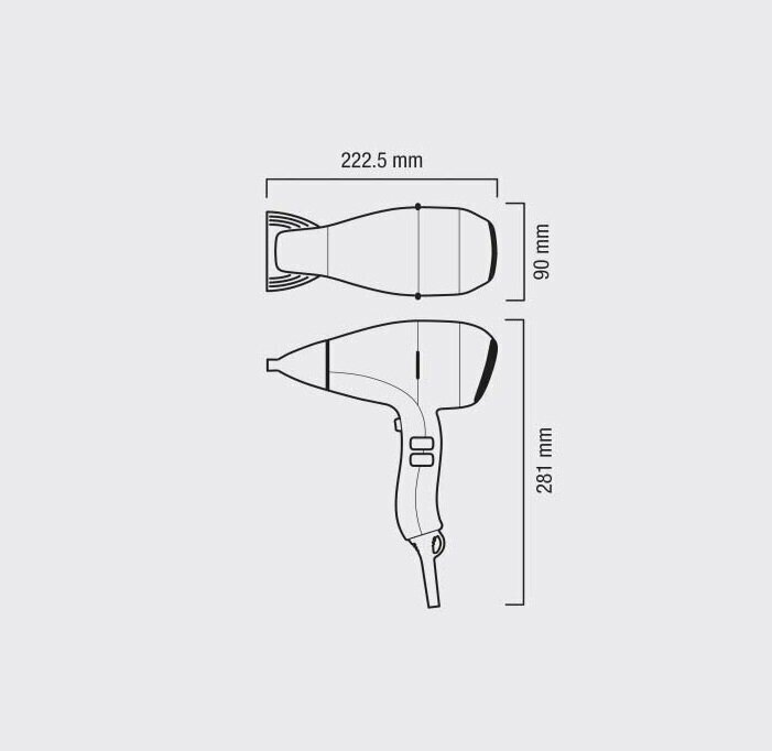 Type: hair dryer, accessory type: narrow concentrator, hair dryer power: 2000 W, additional functions: ionization, cold air supply, features: hanging loop, removable filter, cord swivel 360°, cord protection from feathers