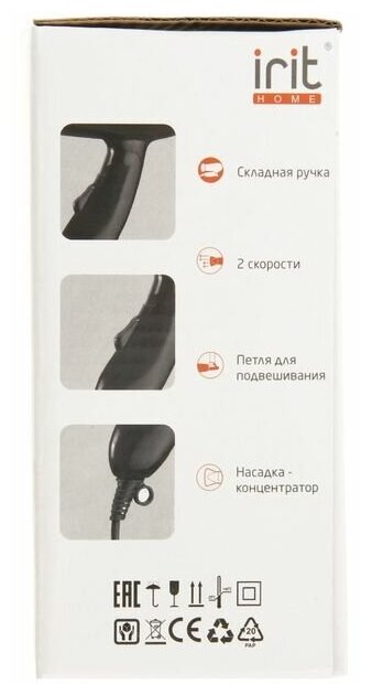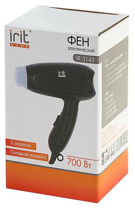 Type: hair dryer, hair dryer power: 700 W, attachments: concentrator, number of heating modes: 2, number of speeds: 2, travel, features: hanging loop, foldable handle