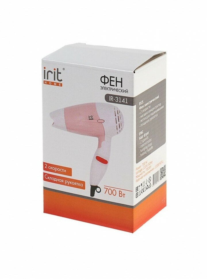 Type: hair dryer, hair dryer power: 700 W, attachments: concentrator, number of speeds: 2, travel, features: hanging loop, foldable handle