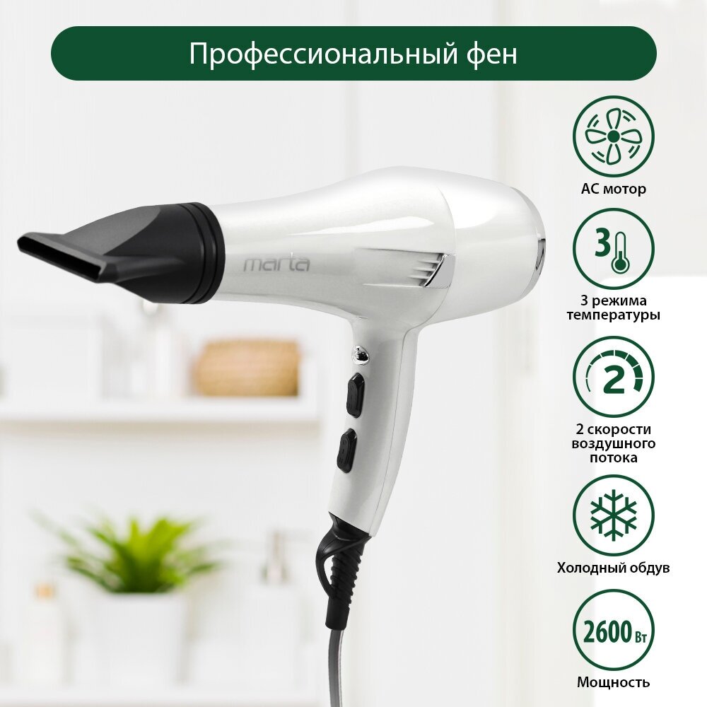 Type: hair dryer, accessory type: concentrator, hair dryer power: 2600 W, additional functions: independent adjustment of heating and air flow, cold air supply, nozzles: concentrator, number of heating modes: 2, k
