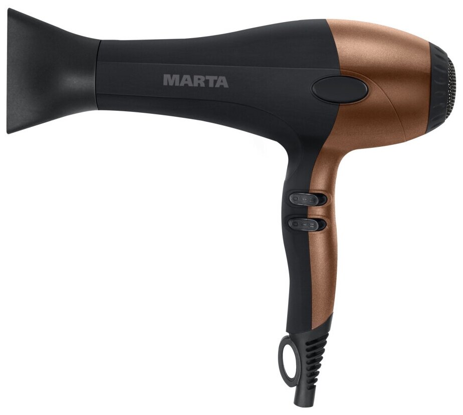 Type: hair dryer, hair dryer power: 2200 W, additional functions: ionization, independent adjustment of heating and air flow, cold air supply, attachments: diffuser, concentrator, number of heating modes: 3, quantity