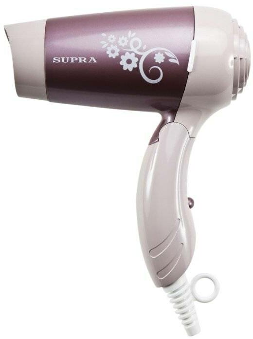 Type: hair dryer, hair dryer power: 1200 W, nozzles: concentrator, number of heating modes: 1, number of speeds: 2, travel, features: hanging loop, foldable handle