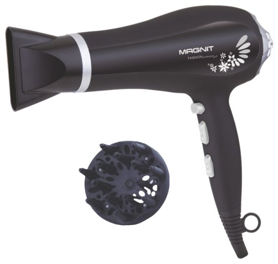 Description: Type: hair dryer, hair dryer power: 2200 W, additional functions: ionization, independent adjustment of heating and air flow, cold air supply, attachments: diffuser, concentrator, number of speeds: 2