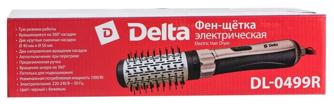 Hair dryer brush, two removable nozzles 40 and 50 mm
