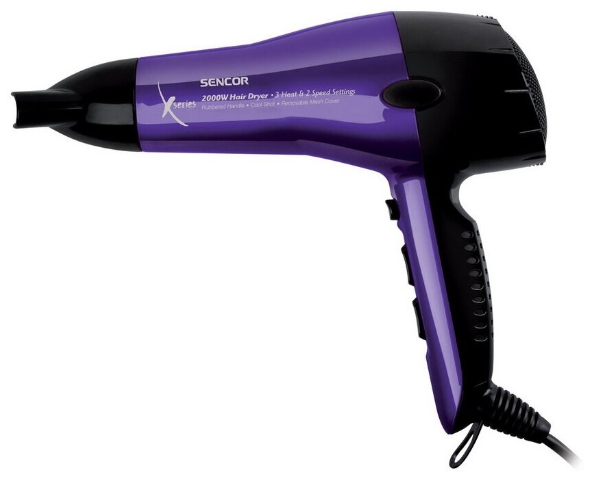 Type: hair dryer, hair dryer power: 2000 W, additional functions: independent adjustment of heating and air flow, cold air supply, nozzles: concentrator, power cord length: 2.60 m