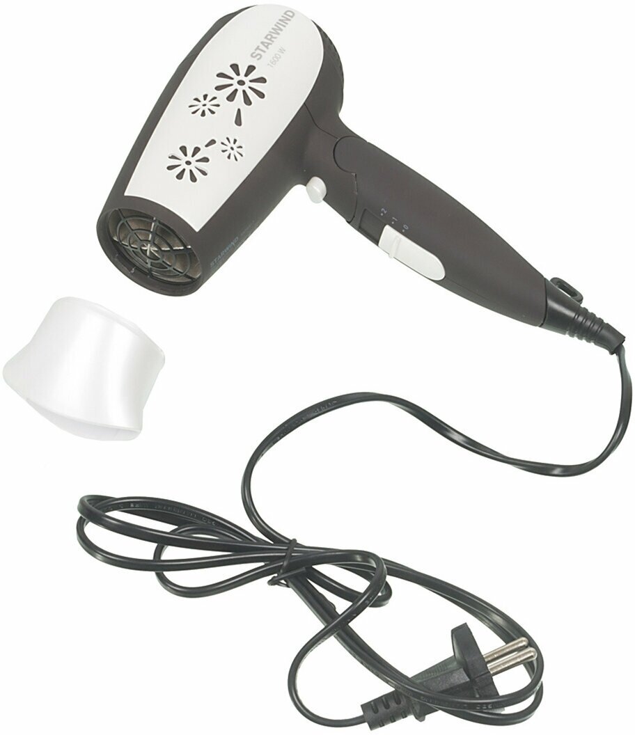 Type: hair dryer, hair dryer power: 1600 W, additional functions: cold air supply, nozzles: concentrator, number of speeds: 2, travel, power cord length: 1.80 m