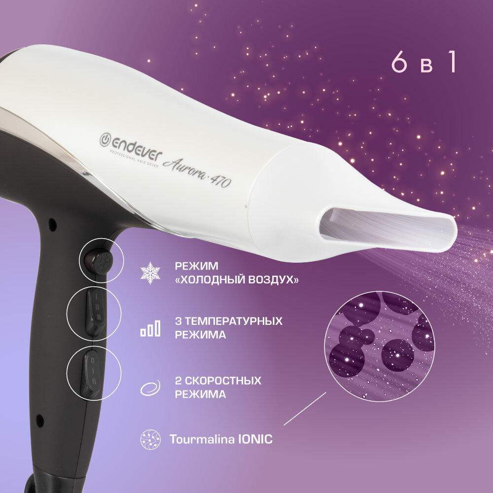 Type: hair dryer, hair dryer power: 2600 W, additional functions: independent adjustment of heating and air flow, cold air supply, attachments: concentrator, number of speeds: 2, removable filter