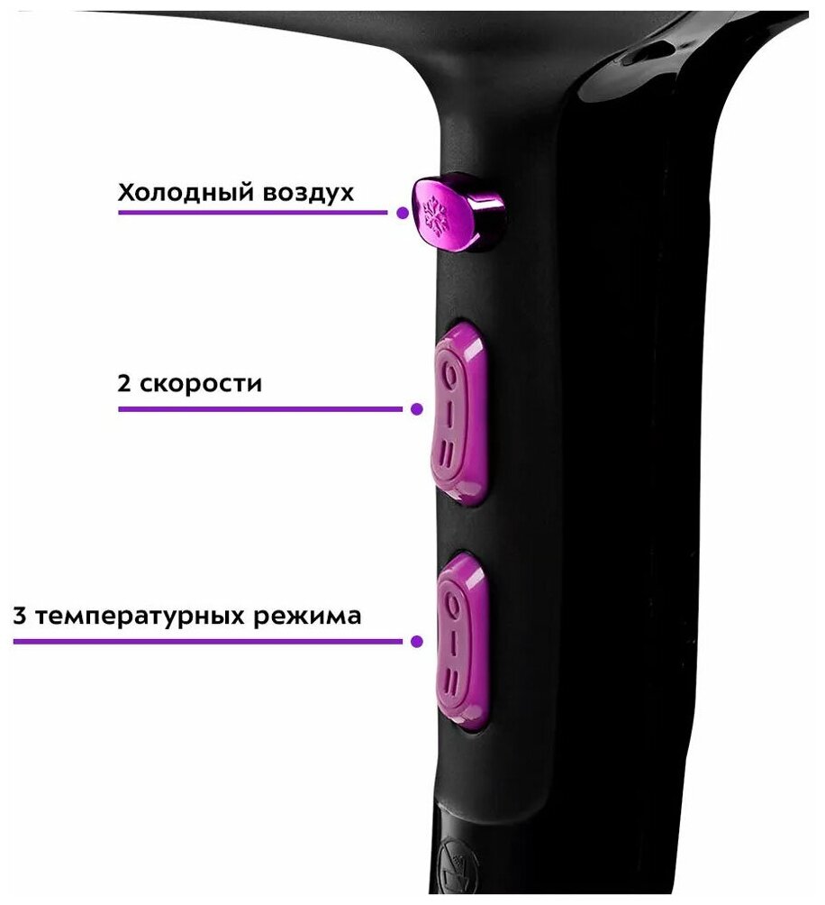 Type: hair dryer, hair dryer power: 1600 W, additional functions: cold air supply, nozzles: concentrator, number of speeds: 2, power cord length: 1.80 m, weight: 665 g