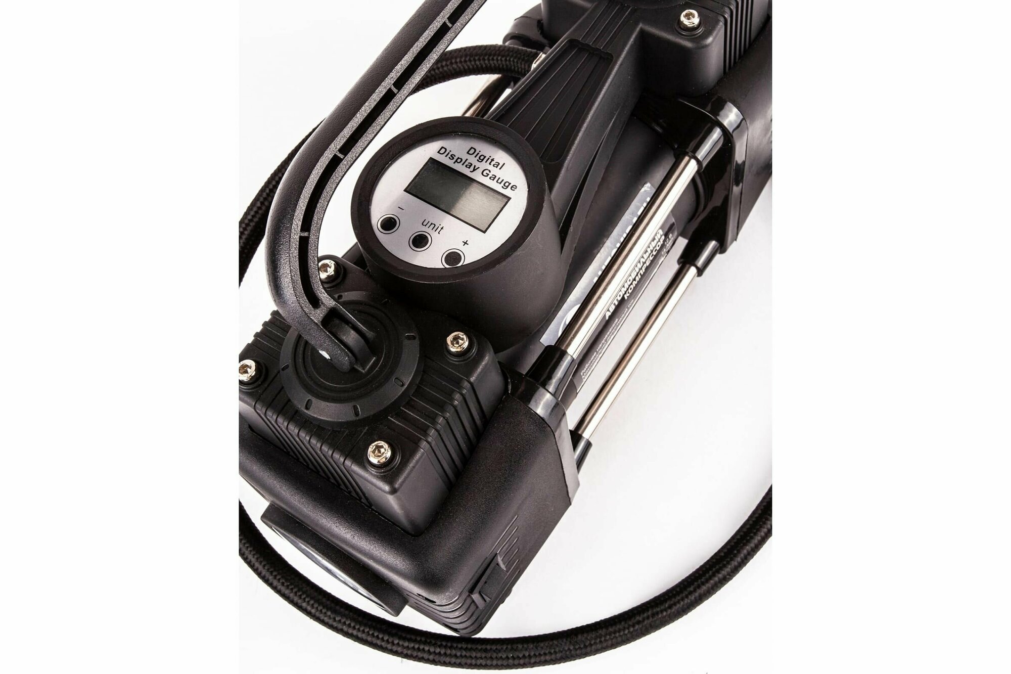 Power: from the cigarette lighter socket, from the battery terminals, from the car network 12V, voltage: 12 V, input capacity: 95 l/min, power: 200 W, maximum pressure: 10 atm, compressor type: piston, cable length