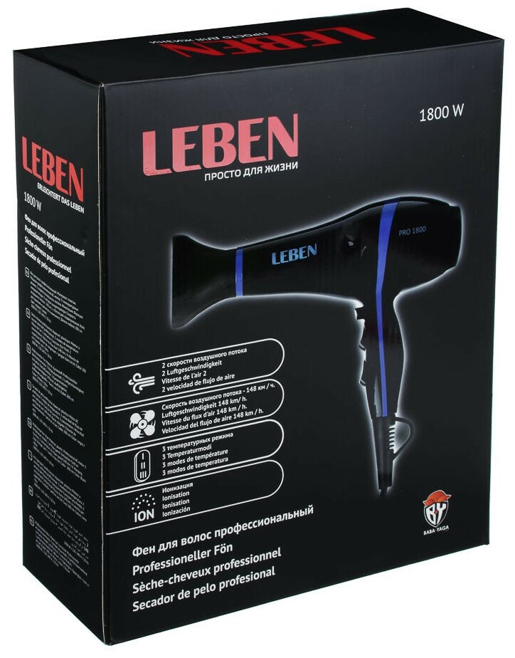 Type: hair dryer, hair dryer power: 1800 W, additional functions: ionization, cold air supply, nozzles: concentrator, number of speeds: 2