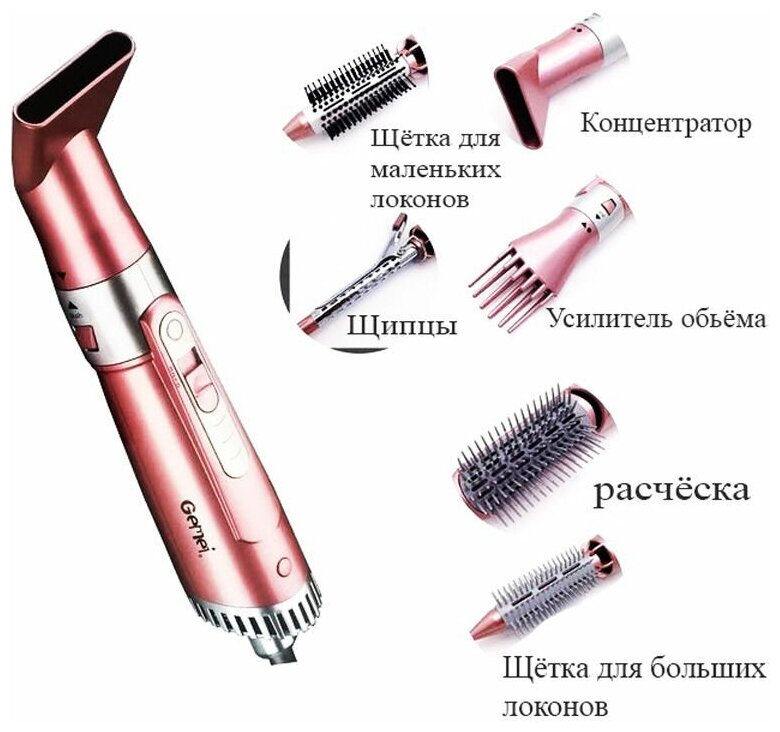 Comb, concentrator, round brush for large curls, round brush for small curls, curling head, brush head