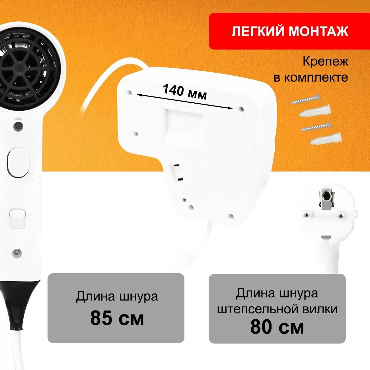 Hairdryer wall - 1 pc. Operation manual - 1 pc. Fixing bar - 1 pc. Screw - 4 pcs. Dowel - 4 pcs. Screw plug - 3 pcs. Box - 1 pc.