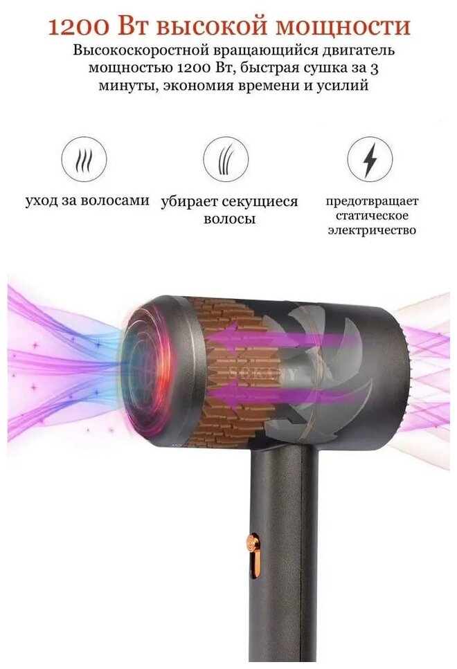 Type: hair dryer, hair dryer power: 1200 W, additional functions: ionization, cold air supply, attachments: concentrator, power cord length: 1.80 m, weight: 500 g