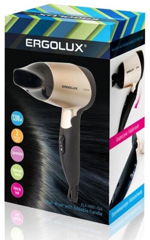 With folding handle ERGOLUX ELX-HD01-C64 1200W, 220-240V black/gold 81675