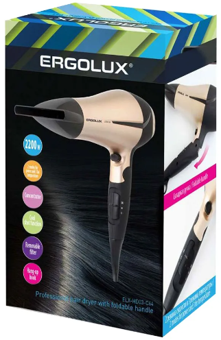 Type: hair dryer, hair dryer power: 2200 W, attachments: concentrator, number of speeds: 2, power cord length: 1.70 m, weight: 800 g