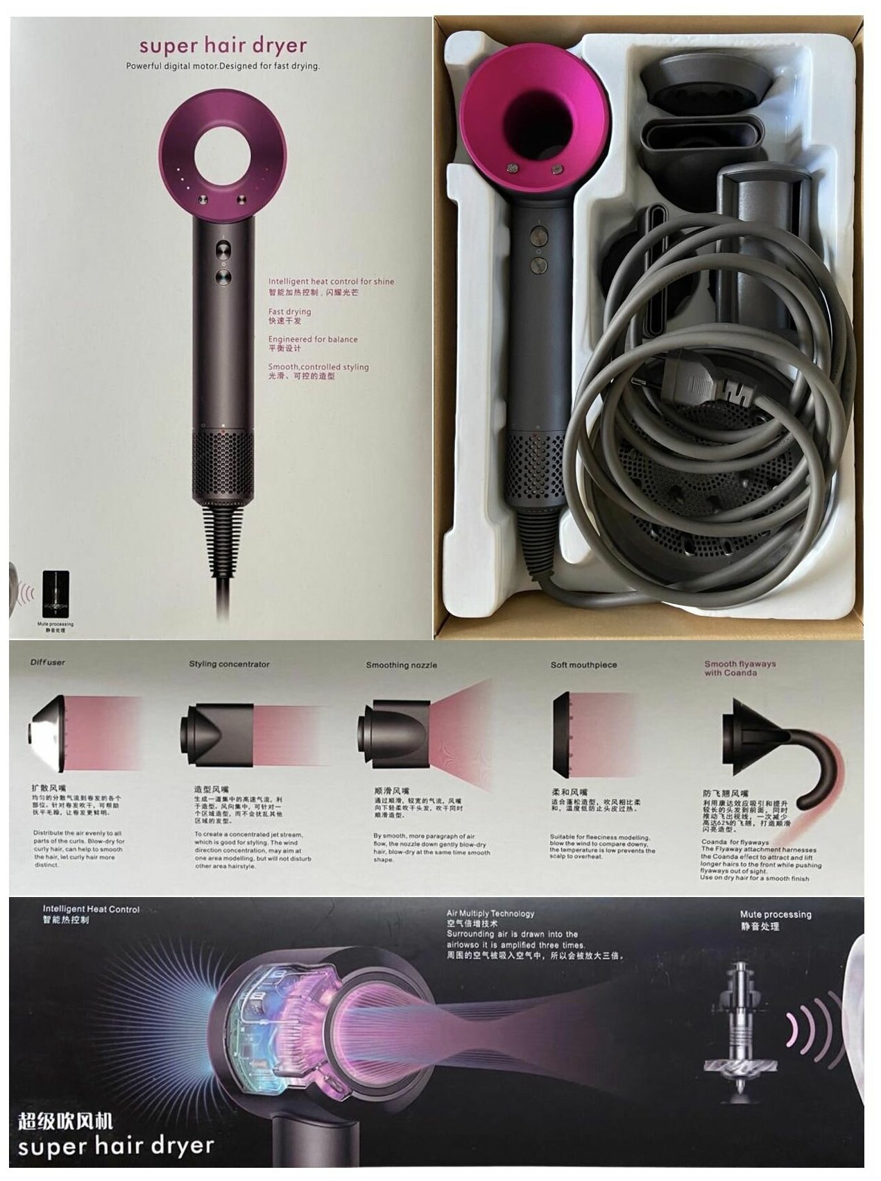 Hairdryer base - 1 piece Nozzles magnetic fastening - 5 pieces Instruction, box.